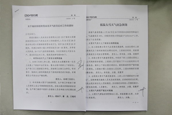 ? ? 此前根據(jù)省市部門氣象預(yù)報信息,為做好持續(xù)雨雪冰凍天氣防范應(yīng)對工作,確保安全生產(chǎn),公司提前組織制定了《低溫大雪天氣應(yīng)急預(yù)案》。
