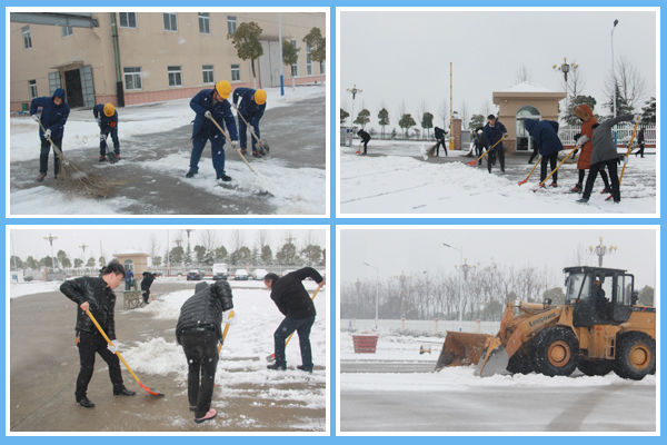 ? ? 根據(jù)應(yīng)急預(yù)案要求,結(jié)合現(xiàn)場實際情況,上午8點,各部門員工冒嚴寒、踏風雪,攜帶清掃工具,開展全廠區(qū)掃雪行動,大家熱情高漲、干勁十足、分工明確,有的鏟雪、有的掃雪、有的堆雪,重點清掃主干道路及公共場所內(nèi)的積雪,方便員工工作生活出行。
