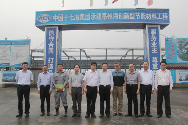 ? ? 在公司領(lǐng)導(dǎo)的帶領(lǐng)下,陳副省長一行首先來到項(xiàng)目現(xiàn)場宣傳展板前,李總向陳副省長詳細(xì)介紹了亳州海創(chuàng)新材料公司的基本情況、投資規(guī)模、產(chǎn)品特點(diǎn)、市場前景以及當(dāng)前工程建設(shè)進(jìn)度等有關(guān)情況。他介紹說:亳州海創(chuàng)新材料公司是中國海螺創(chuàng)業(yè)控股有限公司下屬全資子公司,于2013年8月27日注冊成立,是一家主要致力于新型節(jié)能綠色建筑材料研發(fā)、制造、銷售、應(yīng)用及建筑、安裝等業(yè)務(wù)的企業(yè)。一期纖維水泥板(CCA)項(xiàng)目引進(jìn)歐洲先進(jìn)成套設(shè)備及工藝技術(shù),項(xiàng)目工程于2013年10月23日正式開工建設(shè),預(yù)計(jì)今年9月建成投產(chǎn),陳副省長聽后非常高興。