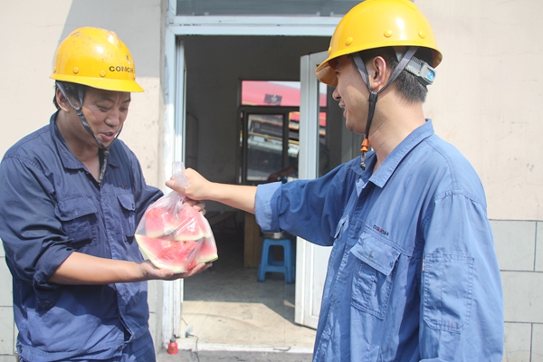 ? ? 一是定期組織開展現(xiàn)場(chǎng)夏季送清涼活動(dòng)。統(tǒng)一購(gòu)買了西瓜、人丹等防暑降溫用品發(fā)放至每位員工,給一線員工送上夏日的清涼。