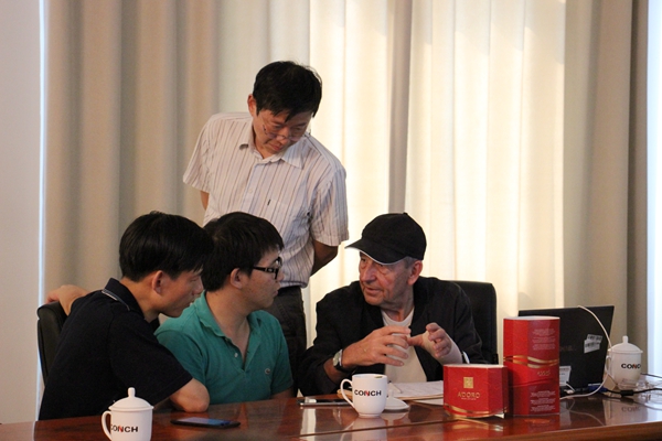 與外國專家、武漢建材設(shè)計(jì)院人員進(jìn)行交流